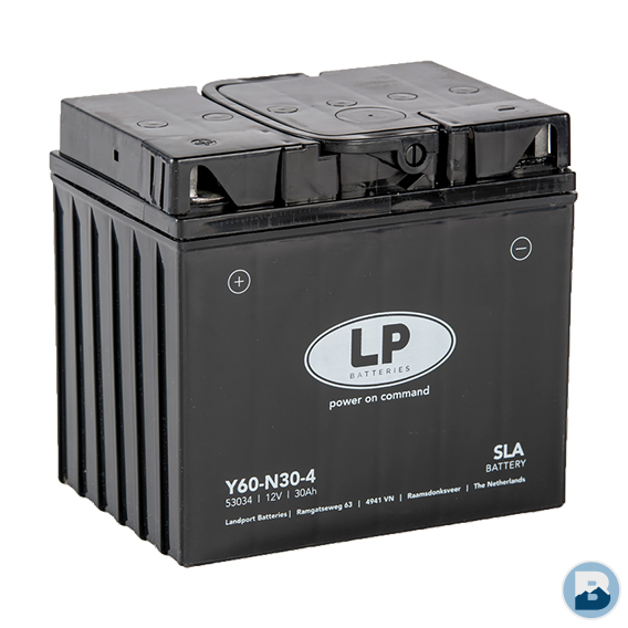 De motoraccu Y60-N30-4, 12 volt, 30 Ah, is een startaccu met AGM technologie. De Y60-N30-4 in de fabriek geactiveerd (gevuld en geladen) en daardoor direct gebruiksklaar bij levering. Deze loodzuur accu is lek- en onderhoudsvrij. Monteren kan in gekantelde positie tot 90°.