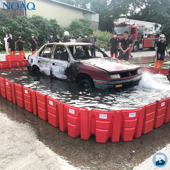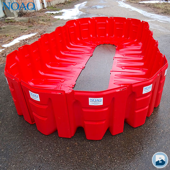 De waterschotten zijn stapelbaar, wat spaart in ruimte bij opslag en transport.